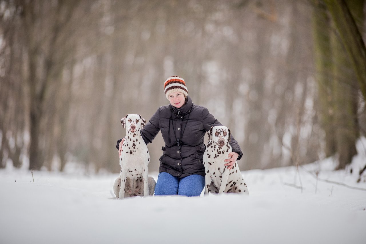 V naší psí smečce máme fenku německé dogy Fany, naše chovné fenky hnědě tečkovaného dalmatina Sienna Sacajawea Royal Hermelin, zvanou Sissi a její dcerku Aishu od Lesa Hrabí. Pak fenku loveckého plemene gordonsetra, Doubravku od Zámeckého kopce a fenku německého ovčáka Aidu ( ta patří mé mamce). Naše fenky neznají boudu, kotec.. bývají s námi doma a sdílejí s námi každodenní radosti a aktivity. Máme velkou zahradu, kde přes léto taky rády odpočívají, každá na svém místě a poctivě hlídají. Jsou zvyklé na malé děti a všechna hospodářské zvířata ( od králíků po koně).