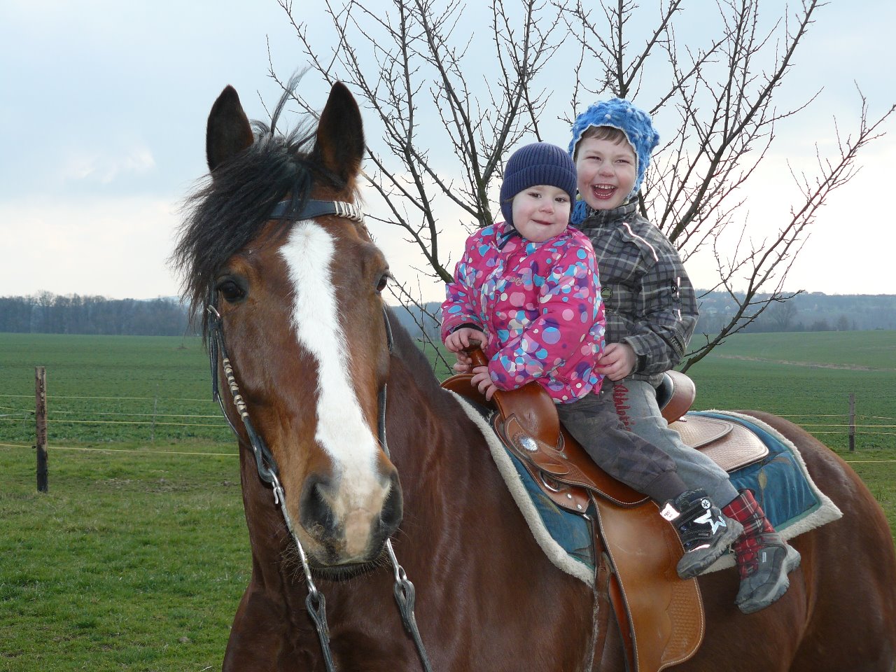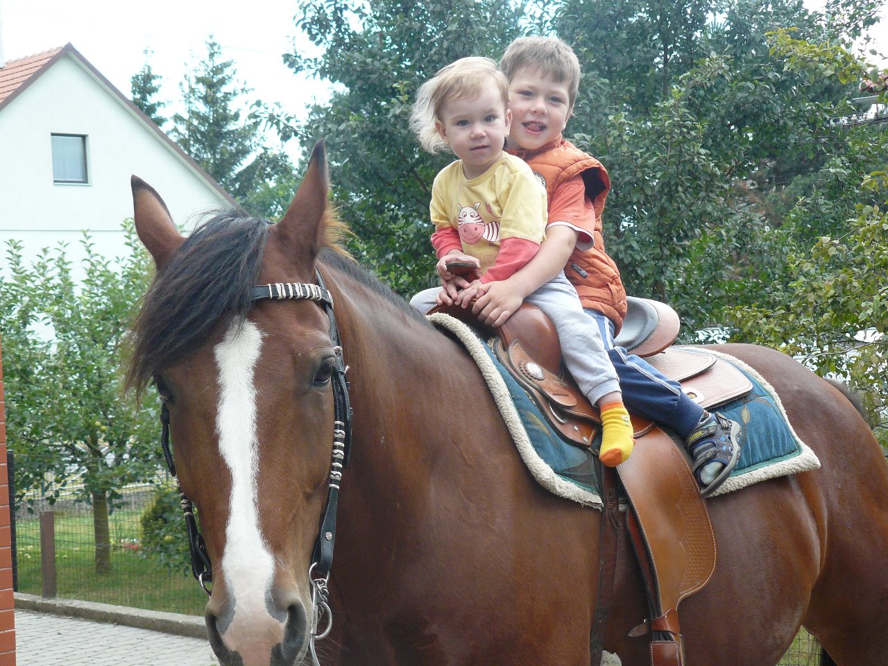 Ráda bych se na svých stránkách zmínila i o mém koni Bohušovi. Bohuše jsem si koupila v roce 2010, ve věku dvou let. Byl to nezkažený, hodný a důvěřivý kůň, který vlastně neuměl nic.. a já jsem neuměla o moc víc. V knihách jsem četla : nezkušený jezdec a nezkušený kůň - to absolutně nejde k sobě!! Tak jsem knihy zahodila a zjistíla jsem, že vyjímky potvrzují pravidlo.. šli jsme nato pomalu, vklidu, s rozumem a hlavně s citem, protože když si kůň usmyslí že něco nechce, tak prostě s tím 500kg zvířetem nic neuděláte. No, ale my jsme to vše zvládli a překonali, vychovala jsem si z něj domácího mazla, který neublíží malému dítěti ani žádnému zvířeti a na vyjížďky je úžasný. Pod sedlem jsem si ho naučila poslouchat na své pobídky a na hlasové povely.. to je asi problém, kdyby ho chtěl jezdit někdo jiný. Neříkám že je to zas takovéj beránkek, někdy to dokáže pořádně rozvalit, jindy je tvrdohlavej jako mezek a někdy je to totální volnomyšlenkář!! Ale i přes jeho klady i zápory ho máme celá rodina jako miláčka a určitě bych chtěla, aby se s námi dožil pokojného stáří.